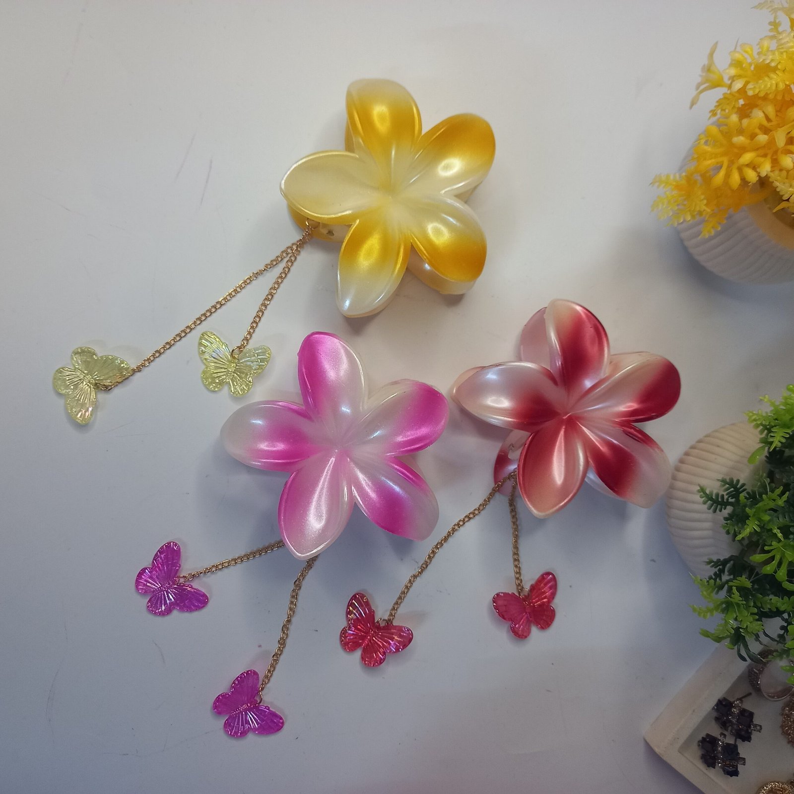 Flower Claw Clip with Butterfly Chain – a perfect mix of elegance and charm. Secure hold, stylish design, and ideal for any occasion.